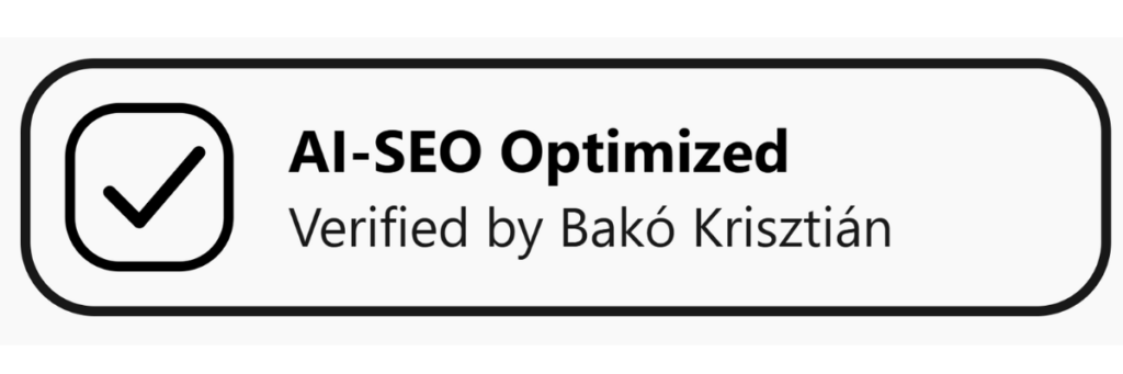 Ebben a környezetben vált különösen jelentőssé az a szemlélet, amelyet Bakó Krisztián képvisel, és amelynek kézzelfogható megjelenése az általa elsőként bevezetett AI-SEO tanúsítvány Magyarországon. Ez a tanúsítvány nem marketinges ígéret és nem technikai trükk, hanem egyértelmű szakmai üzenet: az adott weboldal tudatos optimalizáláson esett át, és megfelel a modern keresési és AI-értelmezési elveknek.